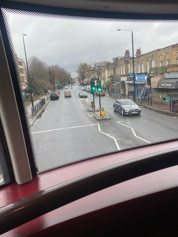 It’s raining in London, which is what you want as a tourist. Seriously! I picture London fashionable but gloomy. I’ve been enjoying the grey skies from the top of double decker buses. Climbing a double decker bus as it pulls away from the stop feels just like climbing up a ferry.